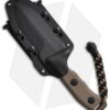 The Microtech Crosshair is an extremely sturdy fixed blade knife. This knife is tried and true; it will hold up to some adverse conditions. The D2 blade is full tang, tan colored, and double edged. The edges are standard plain. The handle is a tan polymer with a braided lanyard and stainless steel “knocker” bead. Includes a heavy duty Kydex sheath.