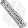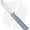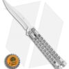 This Biegler Bladeworks Stinkfinger balisong offers an impressive custom design for all of your flipping needs. It has a 9-hole titanium handle with a textured finish. The blade comes in a trailing point style with a swedge and a recurved edge. It has bushings and phosphor bronze washers for a smooth riding blade. Satin finished hardware and a titanium latch finish off the custom design.