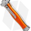 This Zero model features an orange G-10 handle and a satin finished dagger blade.