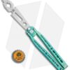 This model of the Artisan Cutlery Kinetic-Tool sports a green titanium handle with a stonewashed multi-tool faux blade.