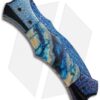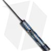 The Small Satis custom automatic knife is hand-made by Brandon Vallotton, who is the son of Rainy, who is the son of Butch; an unmatched pedigree to be sure! This knife has a Chad Nichols “Lizard Skin” Damascus blade, bolsters and firing button. The handle featured blue/white molar scales, anodized titanium liners and a polished 440C stainless steel back spacer. The scales and back spacer feature file work. This custom knife comes in a gift box with a certificate of authenticity.