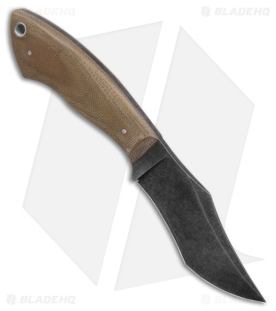 - Green denim micarta handle scales over a full tang.