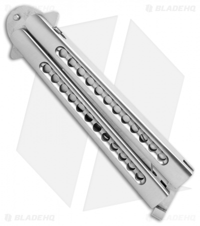This Chris Olofson 29 Knives balisong features a 3.75″ flat clip bowie blade made from CPM-S30V stainless steel with grooved ramps. It’s outfitted with stainless steel deluxe fluted skeleton handles, hidden pins, and a batangas latch. This collectible butterfly knife offers top quality materials and an impressive overall build.