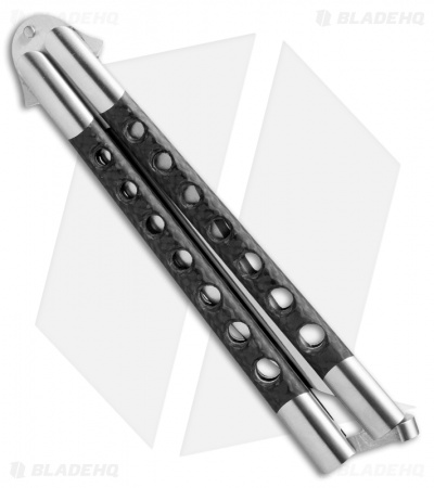 29 Knives Chris Olofson 5″ Long Clip Bowie Balisong Knife Skeleton Carbon Fiber