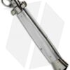 This 15″ Italian Stiletto from A.G.A. Campolin comes in the classic style with a white acrylic handle and a bayonet blade. A.G.A. Campolin offers some of the finest traditional Italian Stiletto’s on the market, with a variety of collectible styles to choose from. This 15″ model has a white acrylic handle with nickel silver bolsters and buttons. Brass pins and liners add a classic touch to the design. The blade comes in a bayonet style with a plain edge and a polished finish. Add a piece of Italian history to your collection with the A.G.A. Campolin 15″ Ringpull Stiletto.