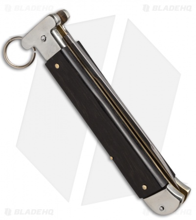 This 9″ Italian Stiletto from A.G.A. Campolin comes in the Francese style with an ebony wood handle and a ring pull opener. A.G.A. Campolin offers some of the finest traditional Italian Stiletto’s on the market, with a variety of collectible styles to choose from. This 9″ Francese model has an ebony wood handle with nickel silver bolsters and buttons. Brass pins and liners add a classic touch to the design. The stainless steel blade has a flat grind and a polished finish. Add a piece of Italian history to your collection with the A.G.A. Campolin Francese Ring Pull Stiletto.