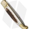 AGA Campolin Brass Lever Lock Automatic Knife Stag Horn (3.75″ Damascus)
