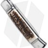 This 8″ Italian Stiletto from AKC comes in the Lever Lock style with a stag horn handle and a flat grind blade. AKC specializes in collectible Italian stilettos made with traditional knife-making techniques. This 8″ Lever Lock model has a stag horn handle with a sturdy stainless steel liner. Brass pins add a classic finishing touch to the design. The blade comes in a drop point style with a plain edge and a polished finish. Add classic Italian style to your collection with the AKC 8″ Lever Lock stiletto.