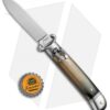 This 8″ Italian Stiletto from AKC comes in the Lever Lock Shot Puller style with a Brazilian horn handle and a flat grind blade. AKC specializes in collectible Italian stilettos made with traditional knife-making techniques. This 8″ Lever Lock model has a Brazilian horn handle with a sturdy stainless steel liner. Brass pins and nickel silver liners add a classic finishing touch to the design. The blade comes in a dagger style with a plain edge and a polished finish. Add classic Italian style to your collection with the AKC 8″ Lever Lock stiletto.