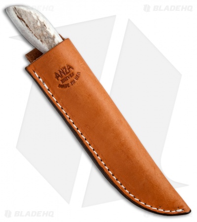 This Anza ASB-FE fixed blade knife has a 4″ blade and a stag horn handle.