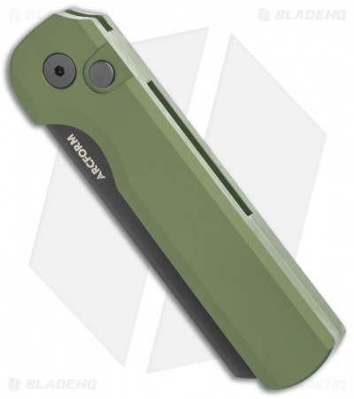 This Slimfoot Auto has a green anodized aluminum handle and a black blade.