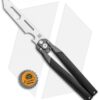 The Kinetic-Tool is truly a one-of-a-kind multi-tool from Artisan Cutlery. Breaking the mold of what a butterfly knife is supposed to be, they incorporated an automatic push-button mechanism as well. The dull trainer blade has a pry bar tip, bottle opener, hex wrench, and a 3″ ruler. Includes a latch for locking the handle when the blade is open or closed.