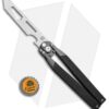 The Kinetic-Tool is truly a one-of-a-kind multi-tool from Artisan Cutlery. Breaking the mold of what a butterfly knife is supposed to be, they incorporated an automatic push-button mechanism as well. The dull trainer blade has a pry bar tip, bottle opener, hex wrench, and a 3″ ruler. Includes a latch for locking the handle when the blade is open or closed.