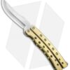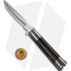 This custom butterfly knife from Balibalistic (Shawn Greacen) features solid titanium handles with fine wood inlays. With a solid and balanced feel in hand, Balibalistic custom balisongs will take your flipping to a new level. Its drop point blade has deep hollow grinds and an impressive satin finish.