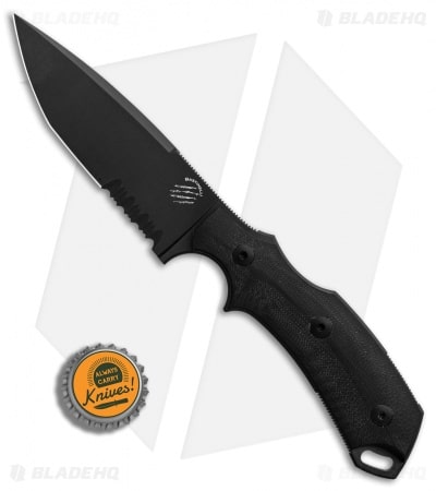 The R.E.D.(Raptor Extremely Dangerous) fixed blade is a Bastinelli design that is sleek and efficient. This RED V2 fixed blade has an N690Co steel blade with a black finish and a partially serrated cutting edge. The handle has contoured black G-10 scales and includes a Kydex sheath. Bastinelli knives are crafted in Italy by Fox Knives.