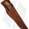 This 8 1/8″ Pro Skinner fixed blade knife features a Damascus steel blade and genuine India Stag Bone handle scales. The nickel silver bolsters adds a great touch to a classy, well-made knife. The included leather sheath has a belt loop for carry.