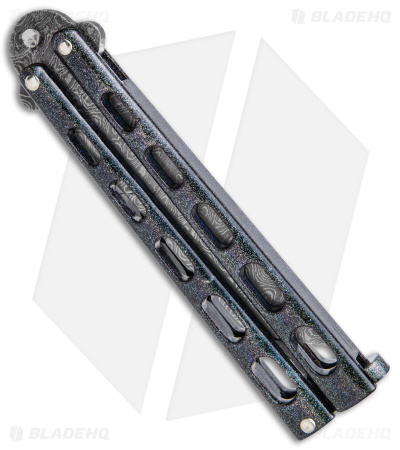 Bear & Son butterfly knife features a stainless steel blade with a tough epoxy coating over its durable steel handles. The handles feature a skeletonized design to reduce weight.
