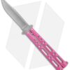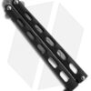 Bear butterfly knife trainer. This trainer knife feature a tough black epoxy coating over the zinc handles. The handles feature a skeletonized design to reduce weight. Stainless steel trainer blade with a satin finish. Single tang pin. A nice USA made mid-range butterfly knife. The appeal of this knife is that it should be legal almost anywhere- you can become a butterfly pro in expectation of the day you get the real deal.