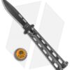 The Bear & Son 115 butterfly knife is built with durable zinc handles with a skeletonized design for reduced weight. It features a stainless steel drop point blade with a black coating that compliments the handles for a unified aesthetic. This is a solid mid-range butterfly knife, made right here in the USA.