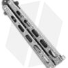 The Bear & Son 115TR butterfly knife trainer is built with durable silver vein epoxy coated zinc handles with a skeletonized design for reduced weight. It features a stainless steel drop point blade with a black coating.