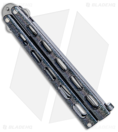 Bear & Son butterfly knife features a stainless steel blade with a tough epoxy coating over its durable zinc handles. The handles feature a skeletonized design to reduce weight. This has a stainless steel clip point blade with a satin finish.