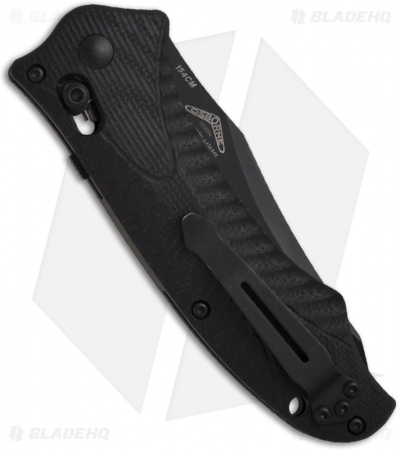 The Auto-Rift 9555BK has a black finished blade with a plain cutting edge and a black G10 handle.