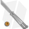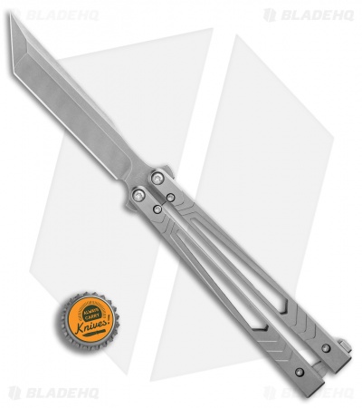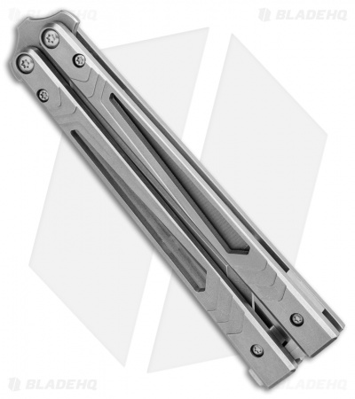 This Biegler Bladeworks Archon custom balisong offers a stylish design for all of your flipping needs. It has a skeletonized titanium handle with unique geometric cutouts. The blade comes in a tanto style with a swedge and a compound grind. It has bushings and phosphor bronze washers for a smooth riding blade. Satin finished hardware and a titanium latch finish off the custom design.