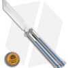 This Biegler Bladeworks Archon custom balisong offers a stylish design for all of your flipping needs. It has a titanium handle with unique G-10 inlay. The blade comes in a hand ground tanto style with a swedge and a compound grind. It has bushings and phosphor bronze washers for a smooth riding blade. Satin finished hardware and a titanium latch finish off the custom design.