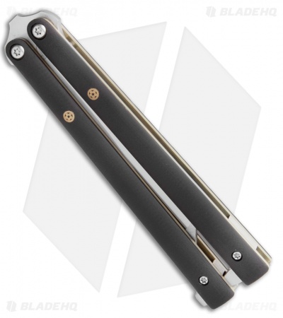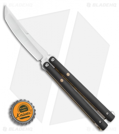 This custom Kuma balisong from Biegler Bladeworks has black G-10 and titanium handles and a Katana-style tanto blade made from CPM-154 steel granting the beautiful stonewash finish.