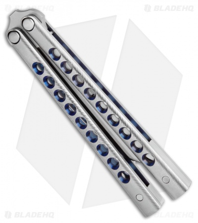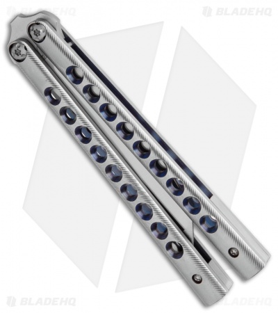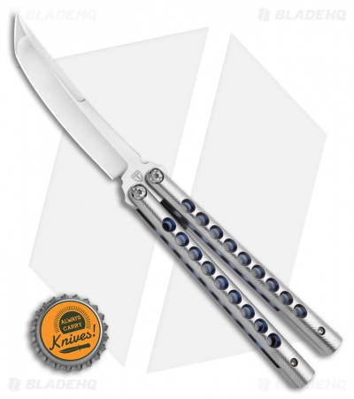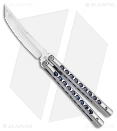 Kuma originates from the Japanese language, meaning “bear”. Just like the stoic animal, this balisong is intimidating and well built. Definitely one for your collection. Its overall elegance is eye candy and the construction is as smooth as butter. The handles are stainless titanium and have 9 gripping holes creating great control to spin this beauty around and around. The blade has a dramatic and thick edge bevel that draws the eye to the keen details of this knife.