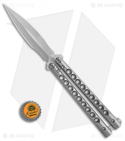 This custom Rockstyle balisong from Biegler Bladeworks is built with a double edge dagger blade and rounded skeletonized titanium handles with a matching titanium latch. It has bushings and phosphor bronze washers for a smooth riding blade. Satin finished hardware and a titanium latch finish off the custom design.
