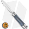 This Biegler Bladeworks Rockstyle custom balisong has blue carbon fiber inlays in the titanium handles and a CPM-154 steel blade with a satin finish. The Rockstyle offers rounded and sculpted titanium handles with bushings and phosphor bronze washers for a smooth riding blade. Stainless steel hardware and a titanium latch finish off the custom design.