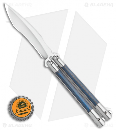 Biegler Bladeworks Custom Rockstyle Gen4 Balisong Ti. Blue CF Inlay (4.5″ Satin)