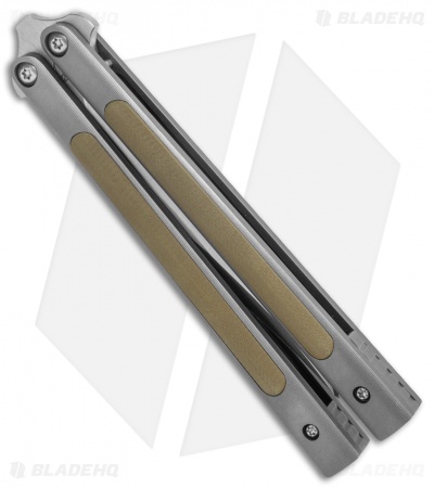 - “Inlay” handle design made from smooth titanium with smooth, OG green G-10 inlays.