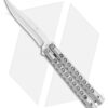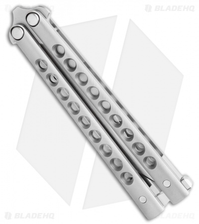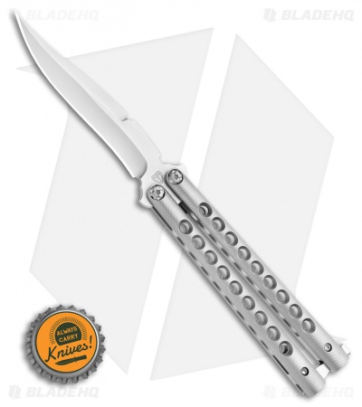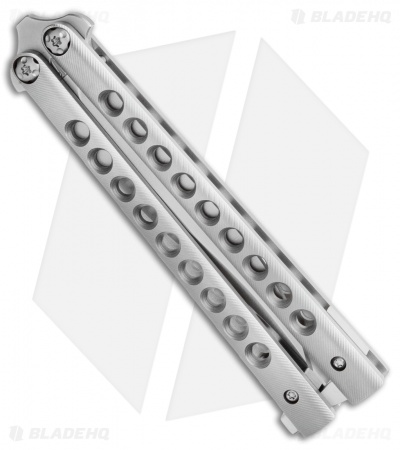 This Biegler Bladeworks Stinkfinger balisong offers an impressive custom design for all of your flipping needs. It has a 9-hole titanium handle with a textured finish. The blade comes in a trailing point style with a swedge and a recurved edge. It has bushings and phosphor bronze washers for a smooth riding blade. Satin finished hardware and a titanium latch finish off the custom design.