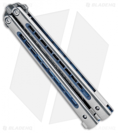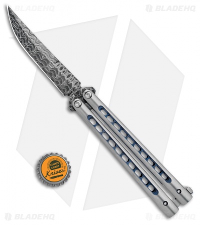 Biegler Bladeworks Zukuri Butterfly Knife Titanium Blue Holes (4.5″ Damascus)