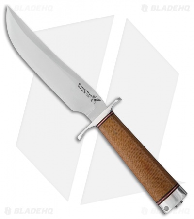 This BlackJack Knives Classic Model 3 features a Natural Micarta handle with a polished guard and pommel. The blade is made with A-2 tool steel in a satin finish. The Model 3 comes with a brown leather belt sheath. Made in the USA.