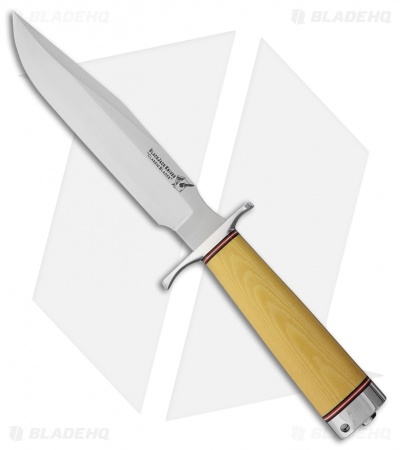 This BlackJack Knives Classic Model 7 features an ivory canvas Micarta handle with a polished guard and pommel. The blade is convex ground CPM-3V steel. The Model 7 comes with a brown leather belt sheath. Made in the USA.