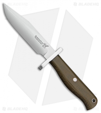 This BlackJack Knives Halo Boot Knife features a green Micarta handle with an aluminum guard and lanyard hole. The clip point blade is made from A-2 tool steel in a satin finish. Includes an embossed brown leather sheath with a black stainless boot clip.