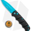 This Blade HQ Exclusive Boker Kalashnikov features a blue D2 blade with blue accents and a black aluminum handle.