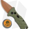 This Blade HQ Exclusive Desert Warrior edition Stubby Strike model has an od green handle and a copper finished blade.