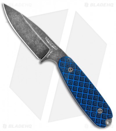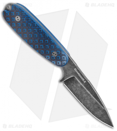 This Blade HQ Exclusive Bradford Guardian3 features a nimbus finished blade made of CPM-M4 steel and some textured black and blue G-10 handle scales.