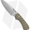 This knife has a stonewash blade with a false edge (swedge) and OD green G-10 scales.
