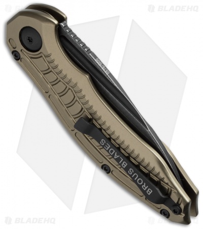 The Bionic automatic knife follows in the wake of the successful Bionic Flipper. It has the same design and overall size, but offers satisfying push button automatic action. This model has an acid stonewash finished hollow ground D2 steel blade and bronzed aluminum handle.