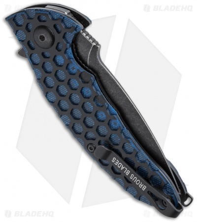 This Blade HQ exclusive custom Caliber from Brous Blades features black/blue layered G-10 and an acid washed blade. Includes certificate of authenticity and is serial numbered.