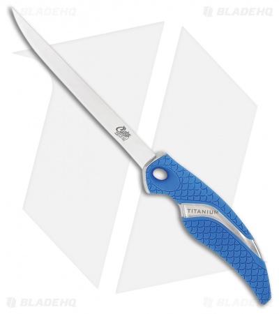 - Blue polymer handle with a non-slip Cuda scale pattern.