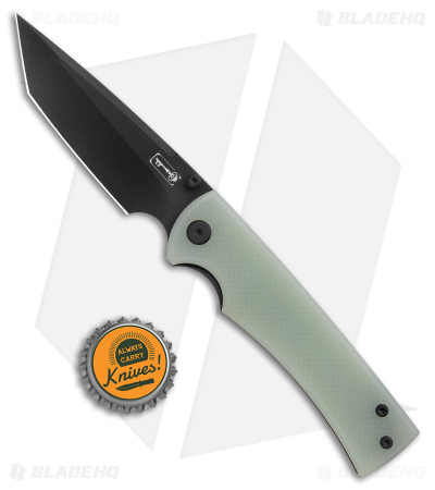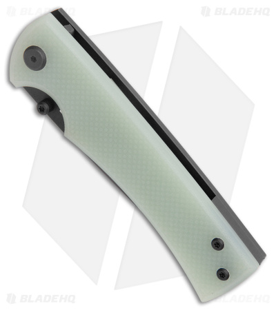 - Black PVD-finished titanium frame with a jade G-10 scale.