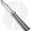 The Chuck Gedraitis #144 Balisong is a latchless butterfly knife with smooth action. Green G-10 handle with brushed satin titanium liners and bolsters. The two-tone finished clip point blade is CTS-XHP stainless steel with acid stonewashed grinds and satin flats. The #144 Balisong has excellent action and build quality!