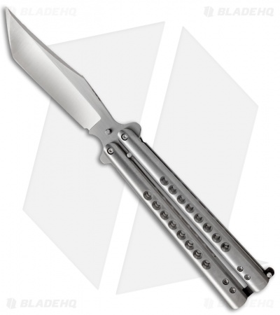 Balisong #147 has drilled titanium handles with bronze bushing pivots and washers and the latch is lightning strike carbon fiber. The clip point tanto blade is CTS-XHP stainless steel with a satin finish. This balisong has excellent action and build quality!
