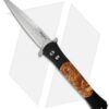 Automatic Rescue/Parachute Knife by Colonial Knife Company. The M-724 features a rescue hook and an automatic blade with a plain edge. It is made for use in emergency survival conditions. The M-724 consists of a hook belt cutter blade on one end and an automatic blade on the other end. The blade is opened by a release button and held in place with a slide lock while the rescue hook has a nail nick for opening. The steel is 1095 HC and the handle is black ISOPLAST with sliding safety and bail loop.